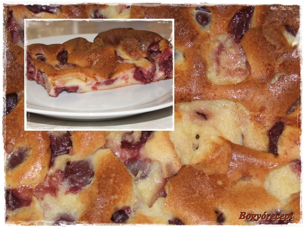 5, Ezután a kész masszát rászedjük a tepsiben lévő meggyekre, és előmelegített, 180 C-os sütőben készre sütjük kb. 30 perc alatt (hőlégkeverés nélkül).