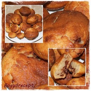 1, A banánt összetörjük és hozzákeverjük az olvasztott vajat, a tejet, a tojást és a cukrot.