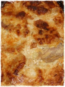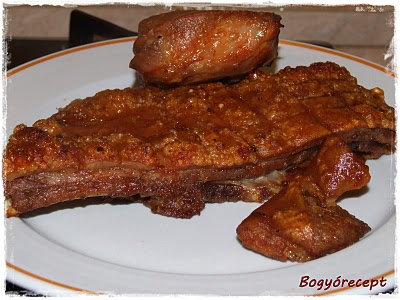 2, A “panírozott” húsokat leöntjük a tejszín és tej keverékével (dobhatunk rá margarindarabkákat is), majd alufóliával letakarva 175 C-os, légkeveréses sütőben 1-1,5 óra alatt puhára sütjük.