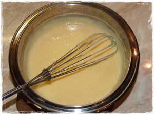 A hozzávalókat habverővel összekeverjük és gőz fölött, állandóan kevergetve addig melegítjük, amíg emelkedni és sűrűsödni nem kezd. Nem kell sokáig főzni.