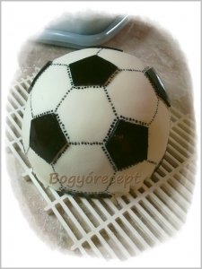 4, Beborítjuk fondanttal a két tortát és felragasztjuk a focira az 5szögeket. Vagy hozzágyúrjuk a fondanthoz a festéket, vagy ecsettel festegetjük.